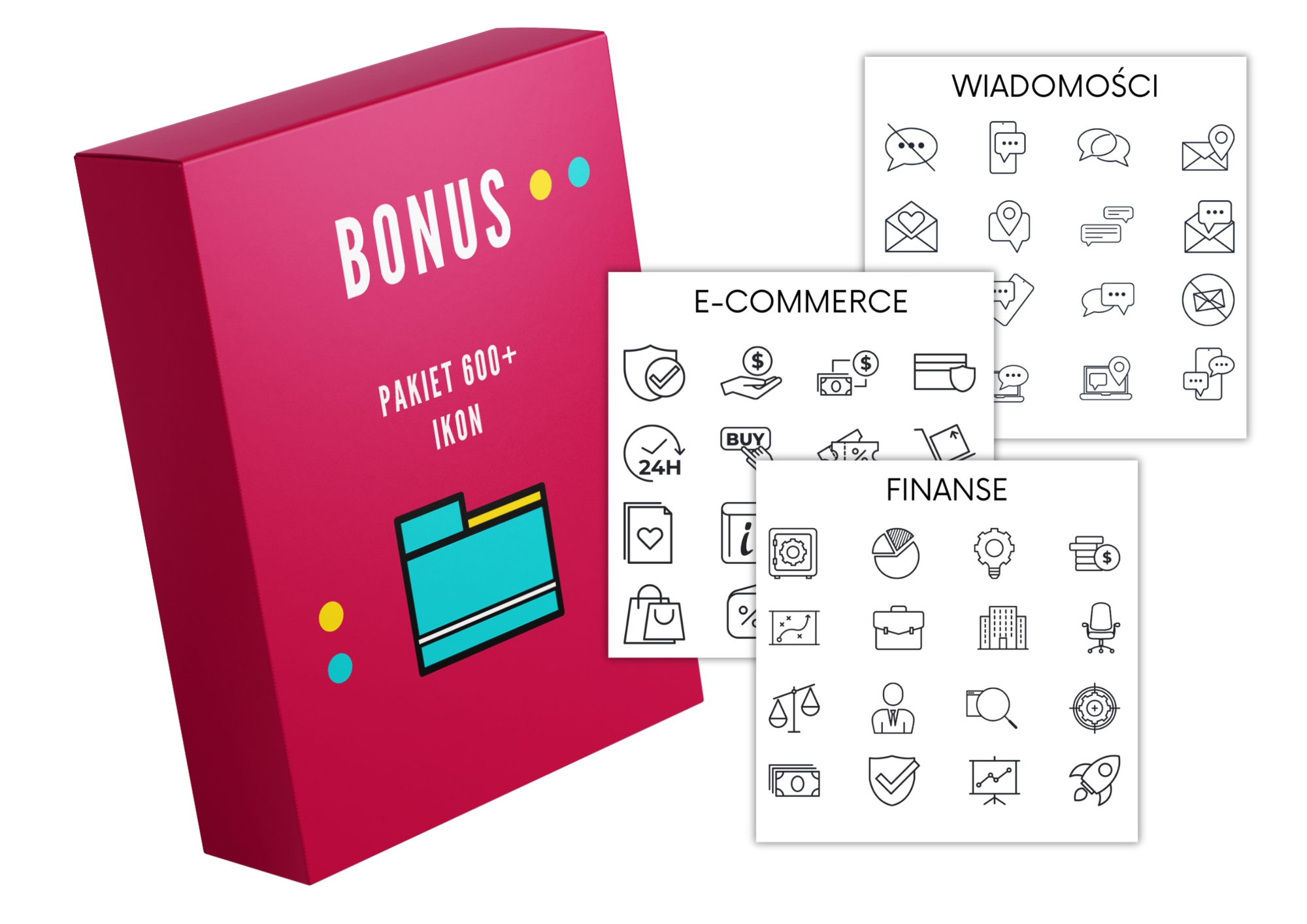 Ponad 600 estetycznych ikon, które możesz wykorzystać w swoich projektach! Ikony są dostępne w 38 kategoriach i różnych formatach (.png, .pdf, .svg), dzięki czemu z łatwością dopasujesz je do swoich projektów.