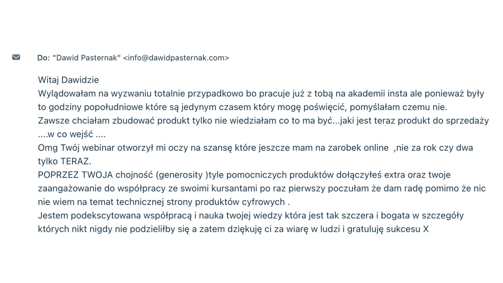 "Jeżeli zastanawiasz się nad udziałem w kursie Dawida, to czas tego zastanawiania jest czasem, w którym już mógłbyś/mogłabyś działać, by osiągnąć swoje cele i spełnić marzenia. 📈🔝