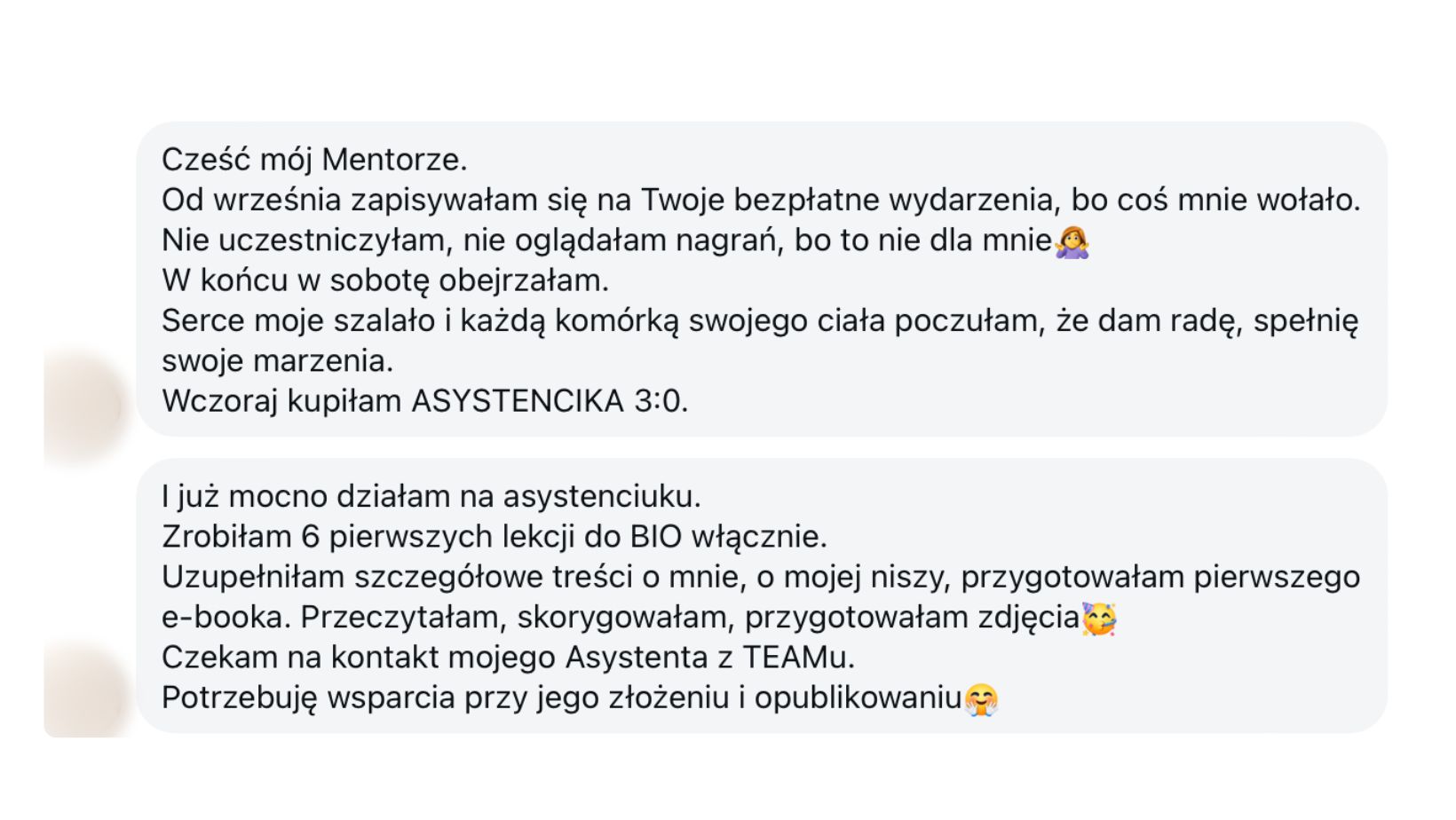 Pierwszy raz w życiu uwierzyłam że mogę zmienić swoje życie i chcę to zrobić z Twoją pomocą. Jesteś wulkanem energii i zarażasz nią innych. Teraz wiem że uda mi się bo mam Ciebie i Twój zespół. To na pewno nie przypadek że znalazłam się na Twoim szkoleniu. Czas zacząć działać i duuuuużo zarabiać na sztucznej inteligencji. Jesteś Wielki!!!"