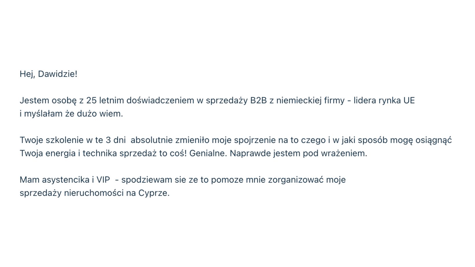"Jestem bardzo happy po szkoleniu z Dawidem! 😊 To było konkretne, treściwe i przekazane w prostym, zrozumiałym języku – bez lania wody, samo mięso! Gdybym tylko wprowadziła choć 10% tego, co Dawid mówi, to pewnie już dawno byłabym milionerką 😄